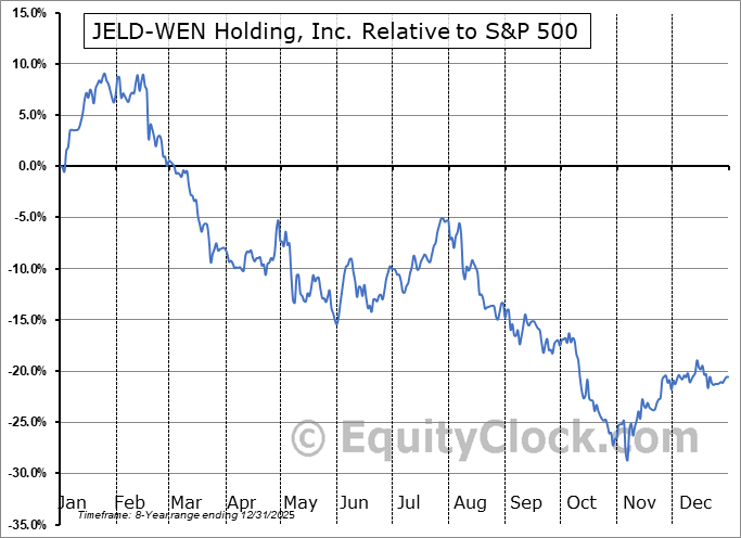 Analysis of the JELD-WEN Holding, Inc. (NYSE:JELD) seasonal charts above shows that a Buy Date of November 2 and a Sell Date of January 25 has resulted in a geometric average return of 13.19% above the benchmark rate of the S&P 500 Total Return Index over the past 7 years. This seasonal timeframe has shown positive results compared to the benchmark in 7 of those periods. This is an excellent rate of success and the return strongly outperforms the relative buy-and-hold performance of the stock over the past 7 years by an average of 42.93% per year.
