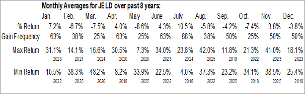 A word of caution: Only 7 years of data is available for shares of JELD, perhaps insufficient to create a seasonal profile that accurately gauges the seasonal tendencies influencing the investment. Ideally, while 20 years is preferred, at least 10 years of data is required to perform a seasonal analysis that is considered to be reliable for future seasonal periods.