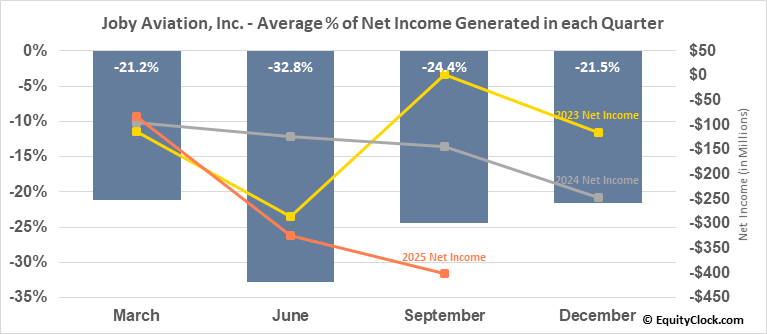 A word of caution: Only 4 years of data is available for shares of JOBY, perhaps insufficient to create a seasonal profile that accurately gauges the seasonal tendencies influencing the investment. Ideally, while 20 years is preferred, at least 10 years of data is required to perform a seasonal analysis that is considered to be reliable for future seasonal periods.