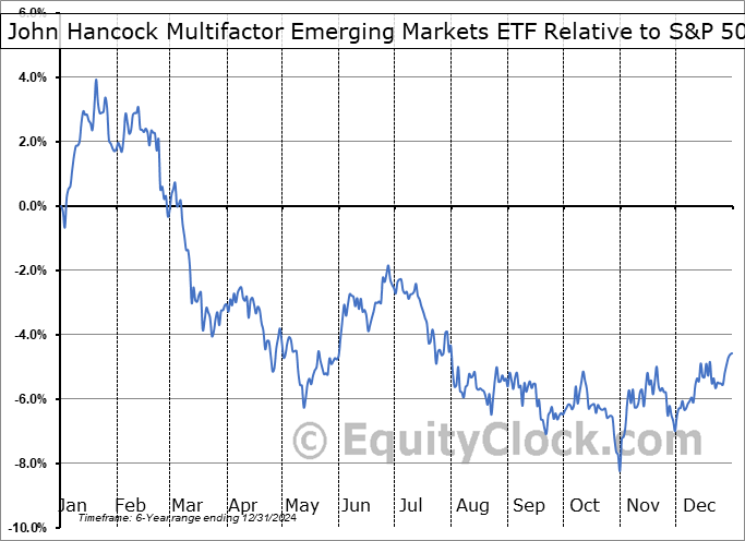 Analysis of the John Hancock Multifactor Emerging Markets ETF (AMEX:JHEM) seasonal charts above shows that a Buy Date of November 26 and a Sell Date of February 27 has resulted in a geometric average return of 1.97% above the benchmark rate of the S&P 500 Total Return Index over the past 6 years. This seasonal timeframe has shown positive results compared to the benchmark in 5 of those periods. This is a very good rate of success and the return strongly outperforms the relative buy-and-hold performance of the stock over the past 6 years by an average of 12.87% per year.