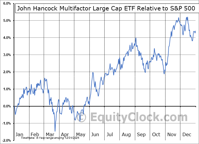 Analysis of the John Hancock Multifactor Large Cap ETF (AMEX:JHML) seasonal charts above shows that a Buy Date of November 8 and a Sell Date of March 4 has resulted in a geometric average return of 0.31% above the benchmark rate of the S&P 500 Total Return Index over the past 9 years. This seasonal timeframe has shown positive results compared to the benchmark in 8 of those periods. This is a very good rate of success and the return outperforms the relative buy-and-hold performance of the stock over the past 9 years by an average of 1.34% per year.