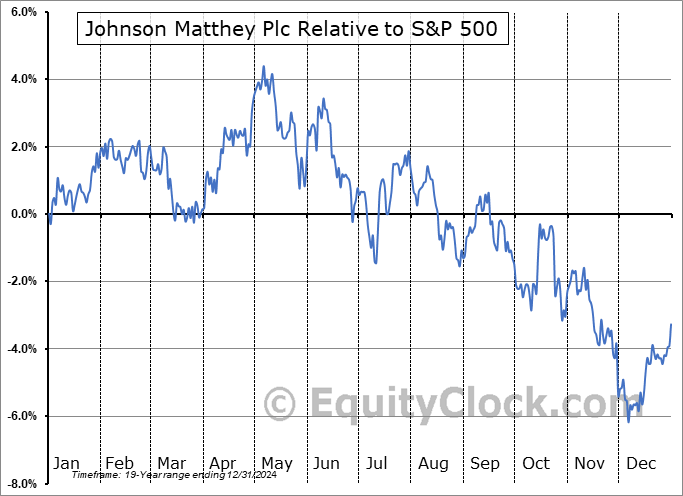 Analysis of the Johnson Matthey Plc (OTCMKT:JMPLY) seasonal charts above shows that a Buy Date of December 12 and a Sell Date of March 10 has resulted in a geometric average return of 3.6% above the benchmark rate of the S&P 500 Total Return Index over the past 19 years. This seasonal timeframe has shown positive results compared to the benchmark in 13 of those periods. This is a good rate of success and the return strongly outperforms the relative buy-and-hold performance of the stock over the past 19 years by an average of 11.43% per year.