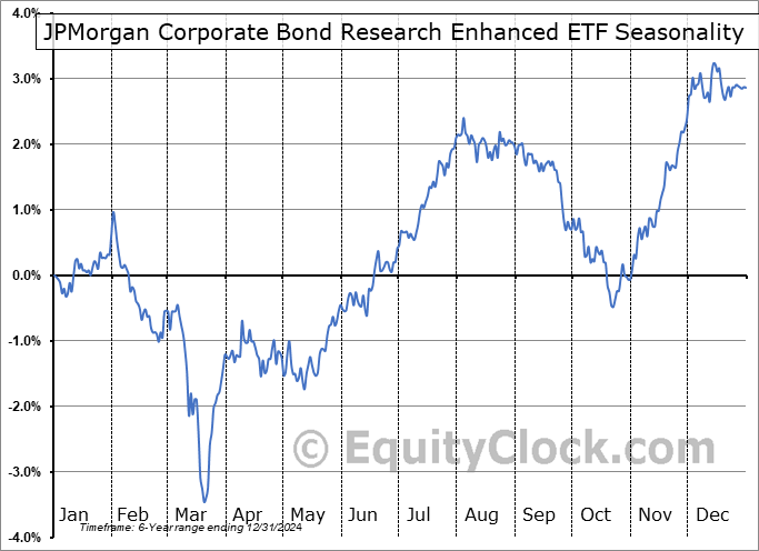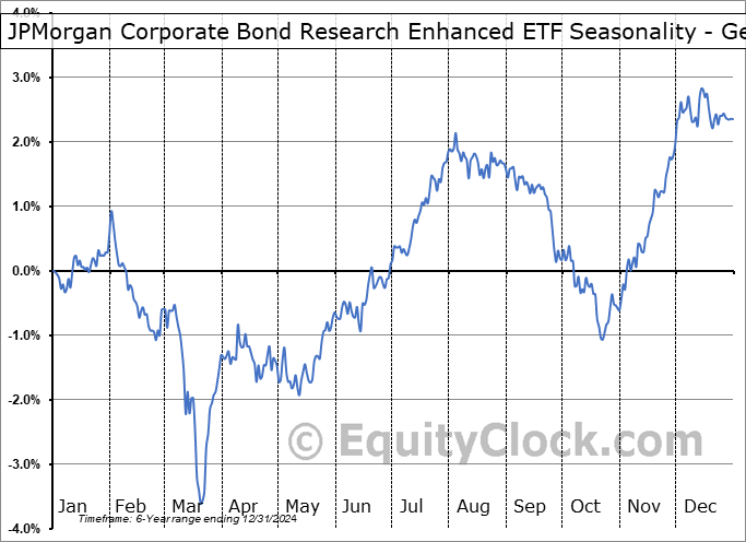 Analysis of the JPMorgan Corporate Bond Research Enhanced ETF (NYSE:BBCB) seasonal charts above shows that a Buy Date of July 10 and a Sell Date of September 30 has resulted in a geometric average return of 0.43% above the benchmark rate of the S&P 500 Total Return Index over the past 6 years. This seasonal timeframe has shown positive results compared to the benchmark in 5 of those periods. This is a very good rate of success and the return strongly outperforms the relative buy-and-hold performance of the stock over the past 6 years by an average of 13.38% per year.
