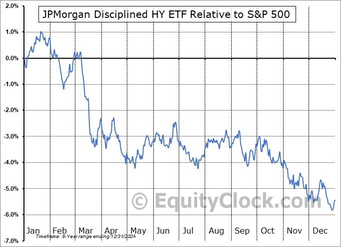 Analysis of the JPMorgan Disciplined HY ETF (AMEX:BBHY) seasonal charts above shows that a Buy Date of July 15 and a Sell Date of October 3 has resulted in a geometric average return of 0.51% above the benchmark rate of the S&P 500 Total Return Index over the past 8 years. This seasonal timeframe has shown positive results compared to the benchmark in 5 of those periods. This is a fair rate of success and the return strongly outperforms the relative buy-and-hold performance of the stock over the past 8 years by an average of 9.72% per year.