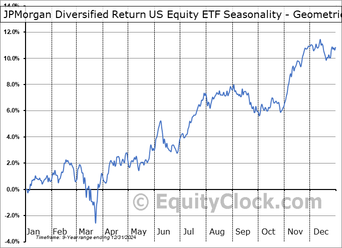 A word of caution: Only 9 years of data is available for shares of JPUS, perhaps insufficient to create a seasonal profile that accurately gauges the seasonal tendencies influencing the investment. Ideally, while 20 years is preferred, at least 10 years of data is required to perform a seasonal analysis that is considered to be reliable for future seasonal periods.