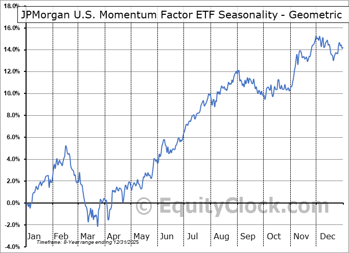 A word of caution: Only 7 years of data is available for shares of JMOM, perhaps insufficient to create a seasonal profile that accurately gauges the seasonal tendencies influencing the investment. Ideally, while 20 years is preferred, at least 10 years of data is required to perform a seasonal analysis that is considered to be reliable for future seasonal periods.