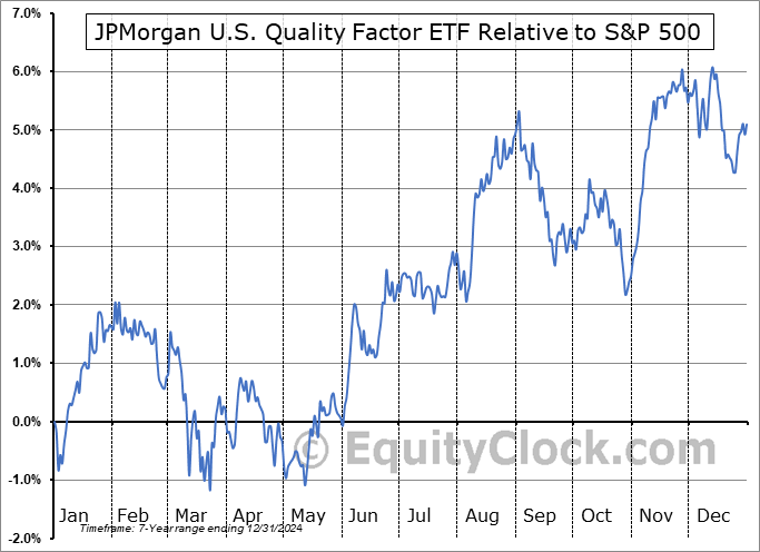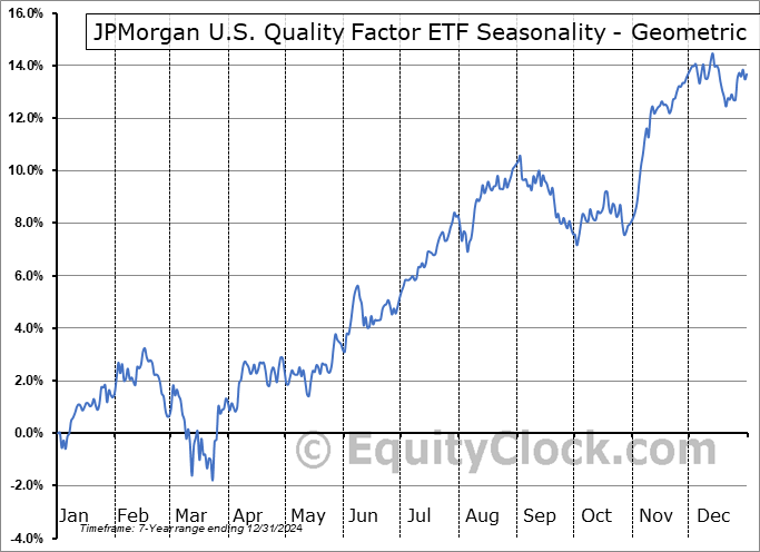 A word of caution: Only 7 years of data is available for shares of JQUA, perhaps insufficient to create a seasonal profile that accurately gauges the seasonal tendencies influencing the investment. Ideally, while 20 years is preferred, at least 10 years of data is required to perform a seasonal analysis that is considered to be reliable for future seasonal periods.