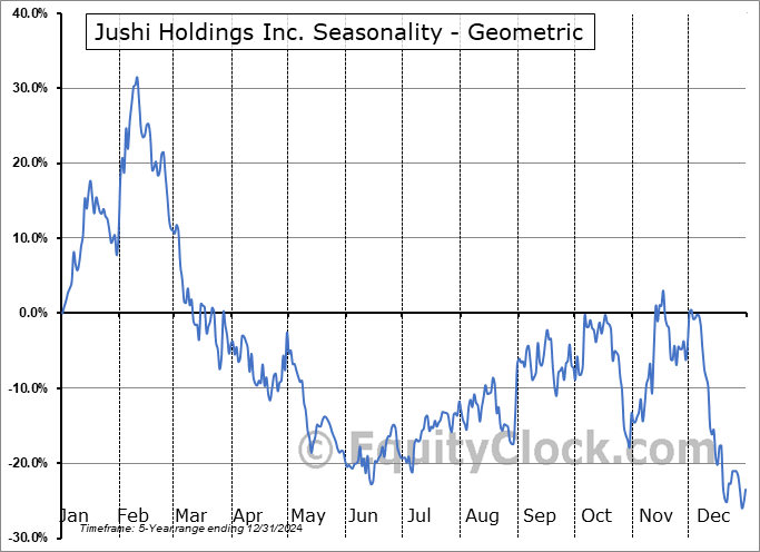 Jushi Holdings Inc. (CSE:JUSH.CA) Seasonal Chart