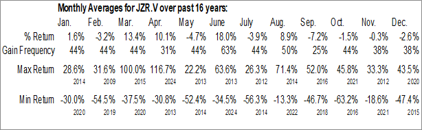 To download JZR.V seasonal chart data, please log in or Subscribe.