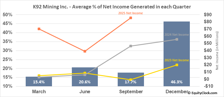 K92 Mining Inc. (OTCMKT:KNTNF) Seasonal Chart