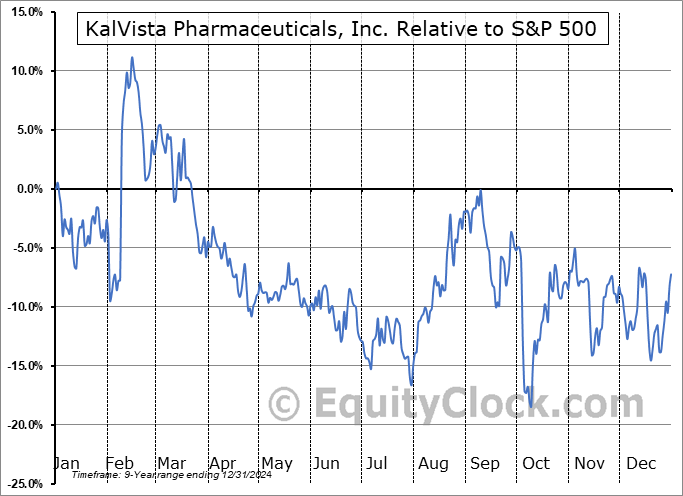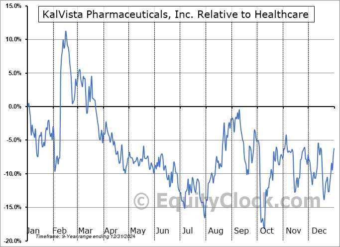 Analysis of the KalVista Pharmaceuticals, Inc. (NASD:KALV) seasonal charts above shows that a Buy Date of October 9 and a Sell Date of January 10 has resulted in a geometric average return of 8.5% above the benchmark rate of the S&P 500 Total Return Index over the past 9 years. This seasonal timeframe has shown positive results compared to the benchmark in 7 of those periods. This is a good rate of success and the return strongly outperforms the relative buy-and-hold performance of the stock over the past 9 years by an average of 36.29% per year.