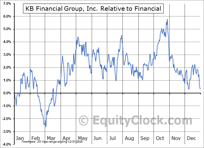 The seasonal timeframe correlates Poorly with the period of seasonal strength for the Financial sector, which runs from November 22 to April 13. The seasonal chart for the broad sector is available via the following link: Financial Sector Seasonal Chart.