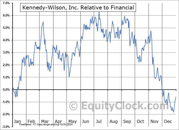 Analysis of the Kennedy-Wilson, Inc. (NYSE:KW) seasonal charts above shows that a Buy Date of December 26 and a Sell Date of March 31 has resulted in a geometric average return of 0.61% above the benchmark rate of the S&P 500 Total Return Index over the past 17 years. This seasonal timeframe has shown positive results compared to the benchmark in 14 of those periods. This is a very good rate of success and the return strongly outperforms the relative buy-and-hold performance of the stock over the past 17 years by an average of 7.17% per year.