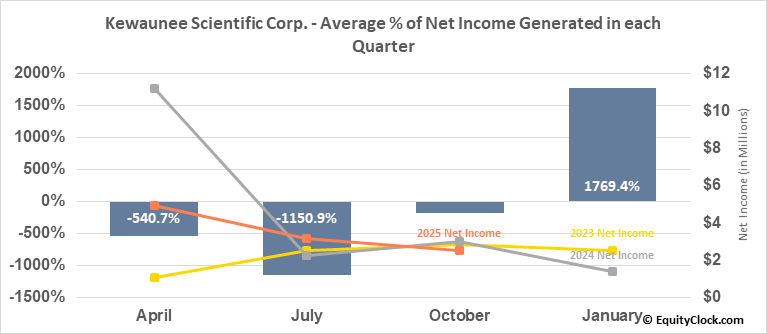 Kewaunee Scientific Corp. (NASD:KEQU) Seasonal Chart