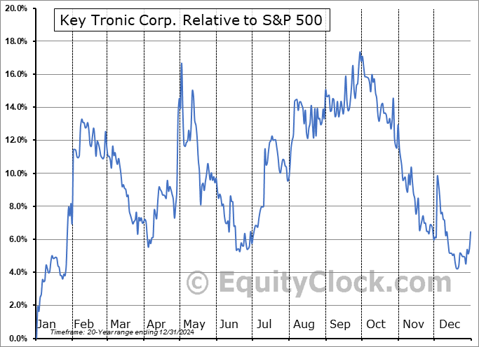 Analysis of the Key Tronic Corp. (NASD:KTCC) seasonal charts above shows that a Buy Date of March 30 and a Sell Date of August 22 has resulted in a geometric average return of 3.89% above the benchmark rate of the S&P 500 Total Return Index over the past 20 years. This seasonal timeframe has shown positive results compared to the benchmark in 13 of those periods. This is a good rate of success and the return strongly outperforms the relative buy-and-hold performance of the stock over the past 20 years by an average of 12.05% per year.