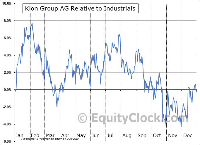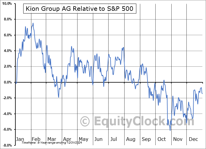 Analysis of the Kion Group AG (OTCMKT:KIGRY) seasonal charts above shows that a Buy Date of December 11 and a Sell Date of March 1 has resulted in a geometric average return of 3.04% above the benchmark rate of the S&P 500 Total Return Index over the past 8 years. This seasonal timeframe has shown positive results compared to the benchmark in 6 of those periods. This is a good rate of success and the return strongly outperforms the relative buy-and-hold performance of the stock over the past 8 years by an average of 20.03% per year.