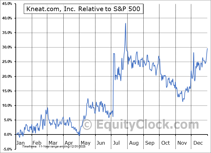 Analysis of the Kneat.com, Inc. (TSE:KSI.TO) seasonal charts above shows that a Buy Date of April 27 and a Sell Date of August 28 has resulted in a geometric average return of 21.99% above the benchmark rate of the S&P 500 Total Return Index over the past 10 years. This seasonal timeframe has shown positive results compared to the benchmark in 10 of those periods. This is an excellent rate of success and the return strongly outperforms the relative buy-and-hold performance of the stock over the past 10 years by an average of 2.87% per year.