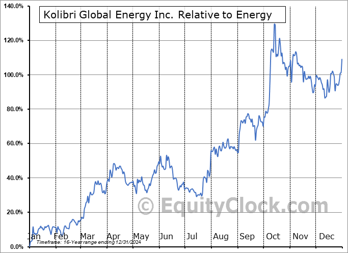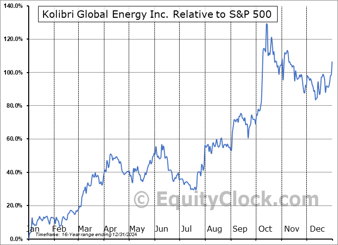 Analysis of the Kolibri Global Energy Inc. (NASD:KGEI) seasonal charts above shows that a Buy Date of November 28 and a Sell Date of April 15 has resulted in a geometric average return of 33.72% above the benchmark rate of the S&P 500 Total Return Index over the past 16 years. This seasonal timeframe has shown positive results compared to the benchmark in 13 of those periods. This is a very good rate of success and the return strongly outperforms the relative buy-and-hold performance of the stock over the past 16 years by an average of 41.03% per year.