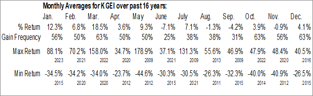 Kolibri Global Energy Inc. (NASD:KGEI) Seasonal Chart