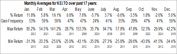 Kolibri Global Energy Inc. (TSE:KEI.TO) Seasonal Chart