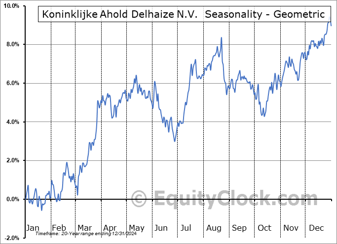 Koninklijke Ahold Delhaize N.V. (OTCMKT:ADRNY) Seasonal Chart
