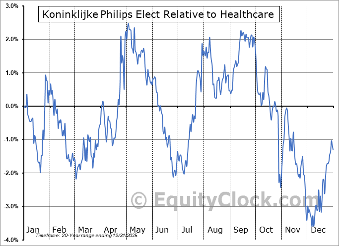 The seasonal timeframe correlates Poorly with the period of seasonal strength for the Healthcare sector, which runs from April 25 to December 4. The seasonal chart for the broad sector is available via the following link: Healthcare Sector Seasonal Chart.