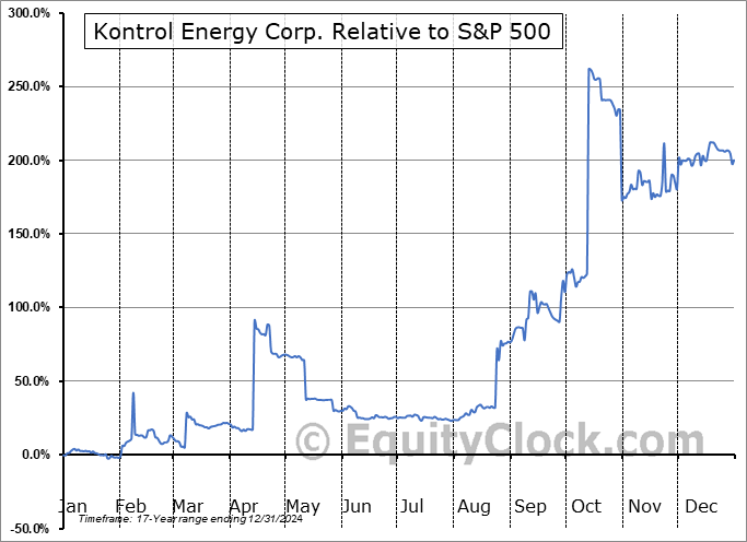 Analysis of the Kontrol Energy Corp. (OTCMKT:KNRLF) seasonal charts above shows that a Buy Date of November 16 and a Sell Date of February 12 has resulted in a geometric average return of 10.47% above the benchmark rate of the S&P 500 Total Return Index over the past 17 years. This seasonal timeframe has shown positive results compared to the benchmark in 11 of those periods. This is a fair rate of success and the return strongly outperforms the relative buy-and-hold performance of the stock over the past 17 years by an average of 24.65% per year.