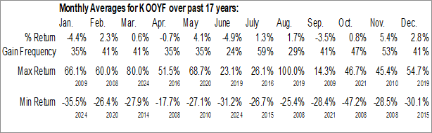 Kootenay Silver Inc. (OTCMKT:KOOYF) Seasonal Chart