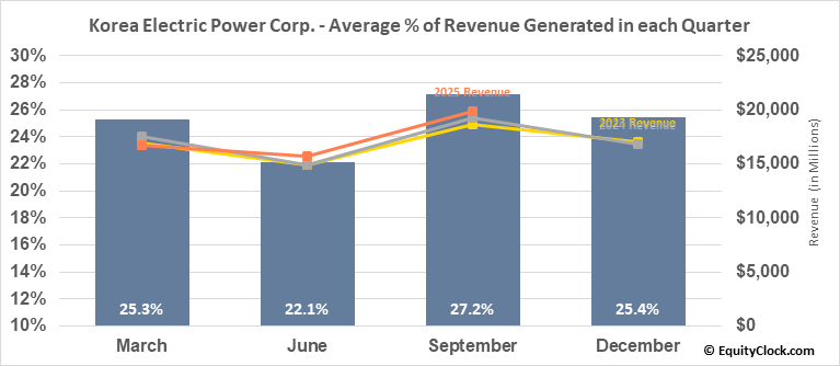 Korea Electric Power Corp is an electric utility company in which the government of South Korea holds a controlling stake. The firm operates in the following segments: Transmission and distribution, Electric power generation (Nuclear), Electric power generation (Non-Nuclear), Plant maintenance & engineering service, and Others. The majority of the energy produced by the company comes from its nuclear and coal-fired assets. Korea Electric Power generates revenue through the Transmission and distribution segment.