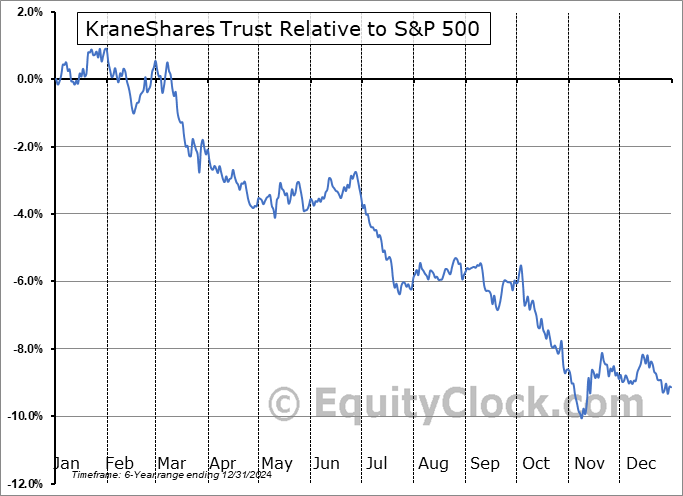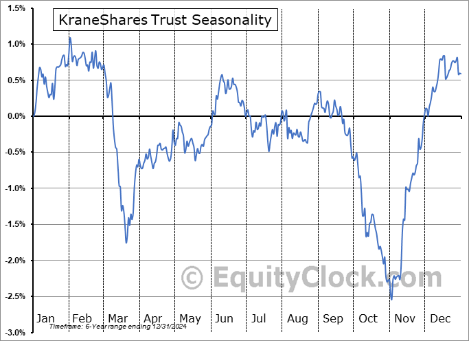 Analysis of the KraneShares Trust (AMEX:KHYB) seasonal charts above shows that a Buy Date of November 10 and a Sell Date of March 13 has resulted in a geometric average return of 1.72% above the benchmark rate of the S&P 500 Total Return Index over the past 6 years. This seasonal timeframe has shown positive results compared to the benchmark in 4 of those periods. This is a good rate of success and the return strongly outperforms the relative buy-and-hold performance of the stock over the past 6 years by an average of 16.49% per year.