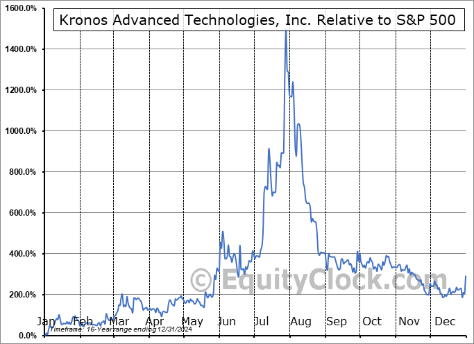 Analysis of the Kronos Advanced Technologies, Inc. (OTCMKT:KNOS) seasonal charts above shows that a Buy Date of January 1 and a Sell Date of March 22 has resulted in a geometric average return of 101.62% above the benchmark rate of the S&P 500 Total Return Index over the past 16 years. This seasonal timeframe has shown positive results compared to the benchmark in 14 of those periods. This is a very good rate of success and the return strongly outperforms the relative buy-and-hold performance of the stock over the past 16 years by an average of 88.87% per year.