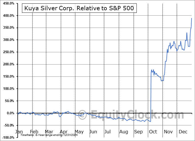 Analysis of the Kuya Silver Corp. (OTCMKT:KUYAF) seasonal charts above shows that a Buy Date of November 30 and a Sell Date of April 15 has resulted in a geometric average return of 20.92% above the benchmark rate of the S&P 500 Total Return Index over the past 6 years. This seasonal timeframe has shown positive results compared to the benchmark in 6 of those periods. This is an excellent rate of success and the return strongly outperforms the relative buy-and-hold performance of the stock over the past 6 years by an average of 42.41% per year.