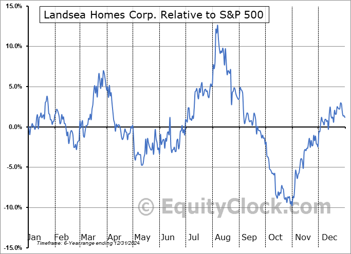Analysis of the Landsea Homes Corp. (NASD:LSEA) seasonal charts above shows that a Buy Date of November 2 and a Sell Date of March 22 has resulted in a geometric average return of 11.53% above the benchmark rate of the S&P 500 Total Return Index over the past 6 years. This seasonal timeframe has shown positive results compared to the benchmark in 5 of those periods. This is a very good rate of success and the return strongly outperforms the relative buy-and-hold performance of the stock over the past 6 years by an average of 28.46% per year.
