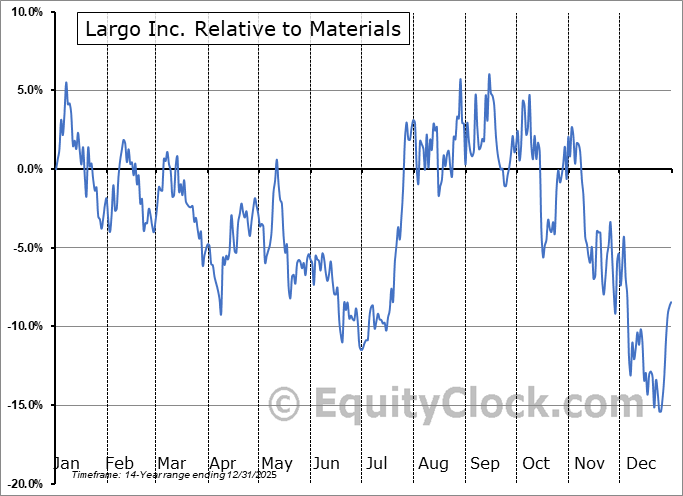 Analysis of the Largo Inc. (NASD:LGO) seasonal charts above shows that a Buy Date of April 8 and a Sell Date of July 26 has resulted in a geometric average return of 2.83% above the benchmark rate of the S&P 500 Total Return Index over the past 14 years. This seasonal timeframe has shown positive results compared to the benchmark in 9 of those periods. This is a fair rate of success and the return strongly outperforms the relative buy-and-hold performance of the stock over the past 14 years by an average of 34.74% per year.