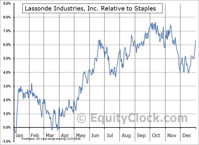 Analysis of the Lassonde Industries, Inc. (TSE:LAS/A.TO) seasonal charts above shows that a Buy Date of March 26 and a Sell Date of June 17 has resulted in a geometric average return of 4.08% above the benchmark rate of the S&P 500 Total Return Index over the past 20 years. This seasonal timeframe has shown positive results compared to the benchmark in 16 of those periods. This is a very good rate of success and the return strongly outperforms the relative buy-and-hold performance of the stock over the past 20 years by an average of 3.85% per year.