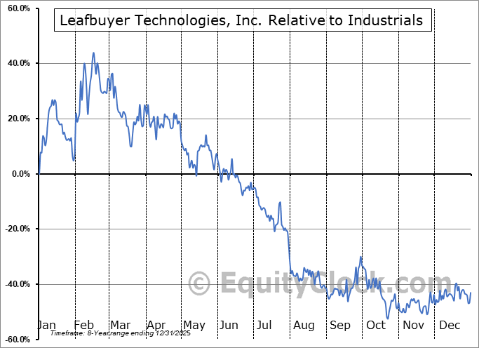 Analysis of the Leafbuyer Technologies, Inc. (OTCMKT:LBUY) seasonal charts above shows that a Buy Date of October 21 and a Sell Date of January 12 has resulted in a geometric average return of 79.23% above the benchmark rate of the S&P 500 Total Return Index over the past 8 years. This seasonal timeframe has shown positive results compared to the benchmark in 6 of those periods. This is a good rate of success and the return strongly outperforms the relative buy-and-hold performance of the stock over the past 8 years by an average of 129.74% per year.
