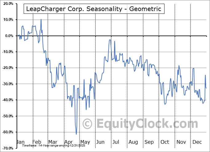 Analysis of the LeapCharger Corp. (OTCMKT:LCCN) seasonal charts above shows that a Buy Date of October 12 and a Sell Date of January 12 has resulted in a geometric average return of 3.49% above the benchmark rate of the S&P 500 Total Return Index over the past 14 years. This seasonal timeframe has shown positive results compared to the benchmark in 8 of those periods. This is a fair rate of success and the return strongly outperforms the relative buy-and-hold performance of the stock over the past 14 years by an average of 44.62% per year.