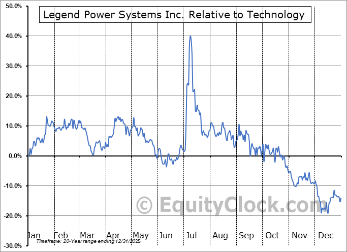 Analysis of the Legend Power Systems Inc. (TSXV:LPS.V) seasonal charts above shows that a Buy Date of December 8 and a Sell Date of April 15 has resulted in a geometric average return of 11.79% above the benchmark rate of the S&P 500 Total Return Index over the past 20 years. This seasonal timeframe has shown positive results compared to the benchmark in 13 of those periods. This is a good rate of success and the return strongly outperforms the relative buy-and-hold performance of the stock over the past 20 years by an average of 30.2% per year.