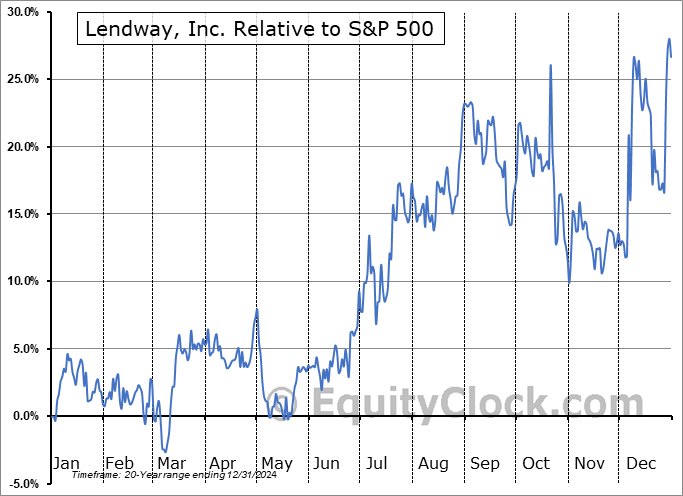 Analysis of the Lendway, Inc. (NASD:LDWY) seasonal charts above shows that a Buy Date of December 27 and a Sell Date of March 19 has resulted in a geometric average return of 5.16% above the benchmark rate of the S&P 500 Total Return Index over the past 20 years. This seasonal timeframe has shown positive results compared to the benchmark in 13 of those periods. This is a good rate of success and the return strongly outperforms the relative buy-and-hold performance of the stock over the past 20 years by an average of 18.1% per year.