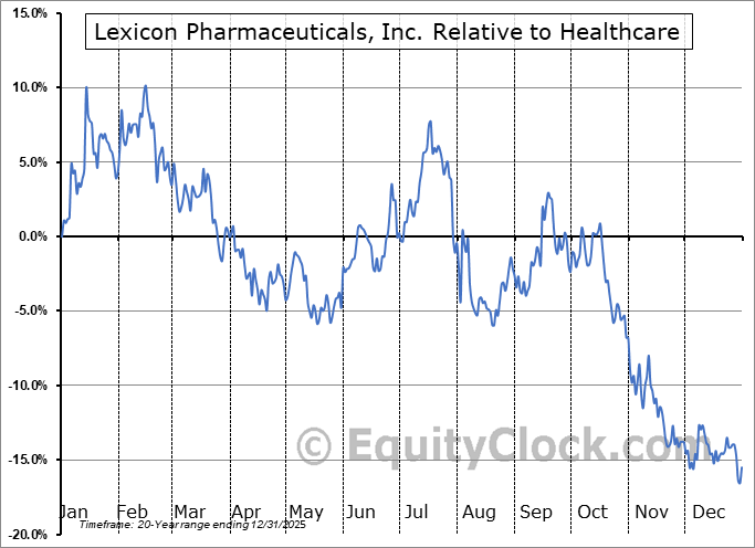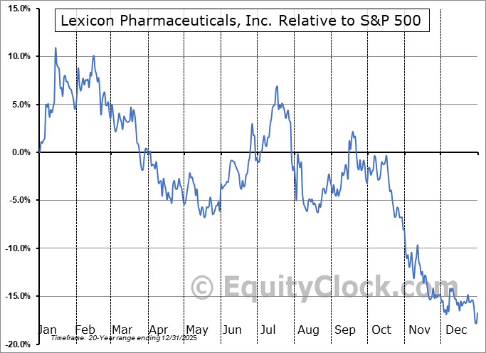 Analysis of the Lexicon Pharmaceuticals, Inc. (NASD:LXRX) seasonal charts above shows that a Buy Date of May 7 and a Sell Date of July 26 has resulted in a geometric average return of 6.73% above the benchmark rate of the S&P 500 Total Return Index over the past 20 years. This seasonal timeframe has shown positive results compared to the benchmark in 14 of those periods. This is a good rate of success and the return strongly outperforms the relative buy-and-hold performance of the stock over the past 20 years by an average of 29.78% per year.