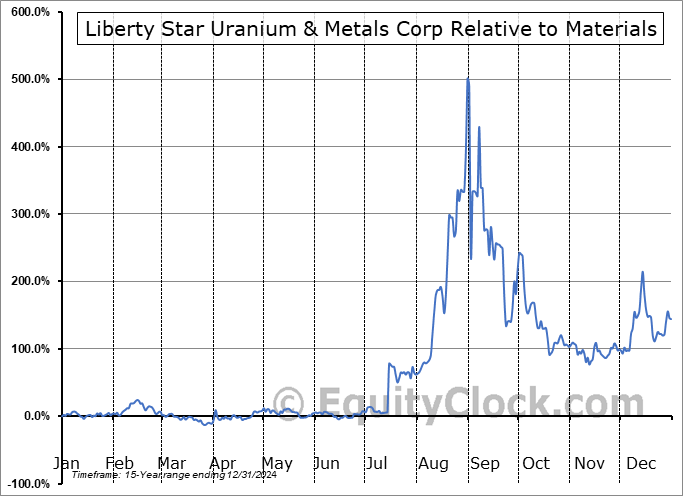 Analysis of the Liberty Star Uranium & Metals Corp (OTCMKT:LBSR) seasonal charts above shows that a Buy Date of April 18 and a Sell Date of August 10 has resulted in a geometric average return of 26.82% above the benchmark rate of the S&P 500 Total Return Index over the past 15 years. This seasonal timeframe has shown positive results compared to the benchmark in 10 of those periods. This is a good rate of success and the return strongly outperforms the relative buy-and-hold performance of the stock over the past 15 years by an average of 51.55% per year.
