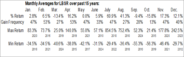 Liberty Star Uranium & Metals Corp (OTCMKT:LBSR) Seasonal Chart