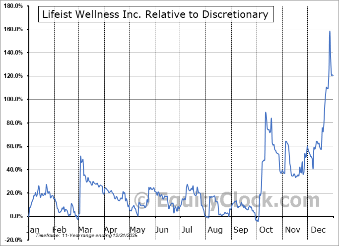 Analysis of the Lifeist Wellness Inc. (OTCMKT:LFSWF) seasonal charts above shows that a Buy Date of November 23 and a Sell Date of March 4 has resulted in a geometric average return of 19.72% above the benchmark rate of the S&P 500 Total Return Index over the past 11 years. This seasonal timeframe has shown positive results compared to the benchmark in 7 of those periods. This is a fair rate of success and the return strongly outperforms the relative buy-and-hold performance of the stock over the past 11 years by an average of 58.41% per year.