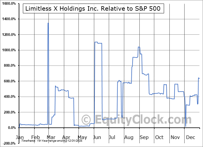 Analysis of the Limitless X Holdings Inc. (OTCMKT:LIMX) seasonal charts above shows that a Buy Date of December 2 and a Sell Date of March 7 has resulted in a geometric average return of 60.47% above the benchmark rate of the S&P 500 Total Return Index over the past 18 years. This seasonal timeframe has shown positive results compared to the benchmark in 14 of those periods. This is a good rate of success and the return strongly outperforms the relative buy-and-hold performance of the stock over the past 18 years by an average of 160.47% per year.