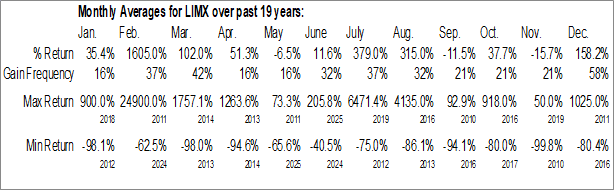 To download LIMX seasonal chart data, please log in or Subscribe.