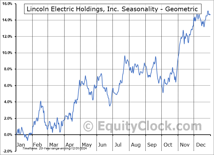 Lincoln Electric Holdings, Inc. (NASD:LECO) Seasonal Chart