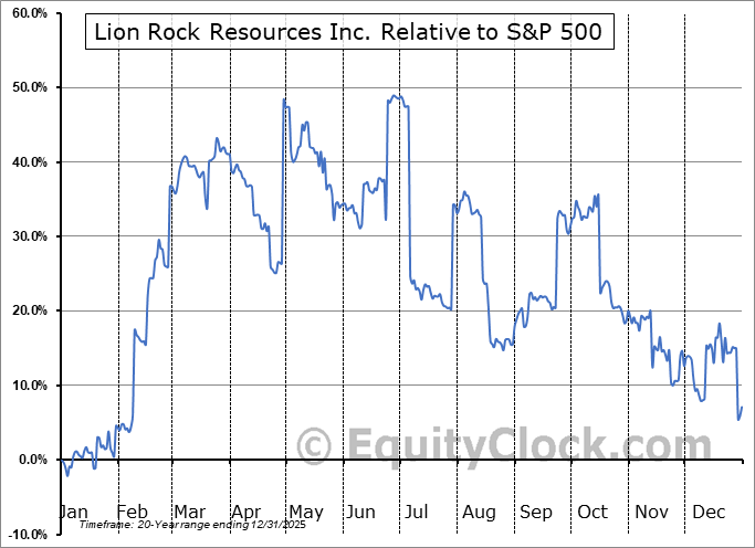 Analysis of the Lion Rock Resources Inc. (OTCMKT:LRRIF) seasonal charts above shows that a Buy Date of December 9 and a Sell Date of March 10 has resulted in a geometric average return of 22.09% above the benchmark rate of the S&P 500 Total Return Index over the past 19 years. This seasonal timeframe has shown positive results compared to the benchmark in 13 of those periods. This is a good rate of success and the return strongly outperforms the relative buy-and-hold performance of the stock over the past 19 years by an average of 56.84% per year.