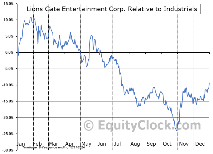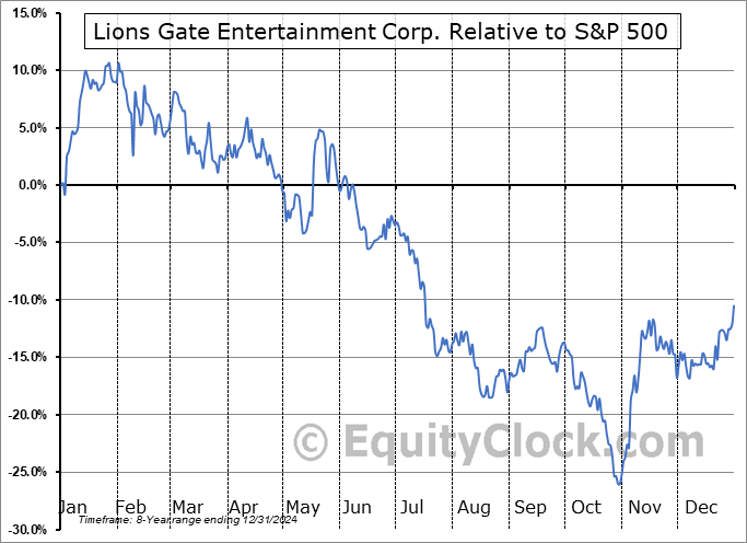 Analysis of the Lions Gate Entertainment Corp. (NYSE:LGF/B) seasonal charts above shows that a Buy Date of November 4 and a Sell Date of January 28 has resulted in a geometric average return of 16.65% above the benchmark rate of the S&P 500 Total Return Index over the past 7 years. This seasonal timeframe has shown positive results compared to the benchmark in 7 of those periods. This is an excellent rate of success and the return strongly outperforms the relative buy-and-hold performance of the stock over the past 7 years by an average of 44.14% per year.
