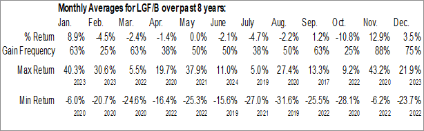 Lions Gate Entertainment Corp. (NYSE:LGF/B) Seasonal Chart