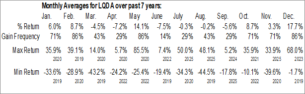 A word of caution: Only 7 years of data is available for shares of LQDA, perhaps insufficient to create a seasonal profile that accurately gauges the seasonal tendencies influencing the investment. Ideally, while 20 years is preferred, at least 10 years of data is required to perform a seasonal analysis that is considered to be reliable for future seasonal periods.